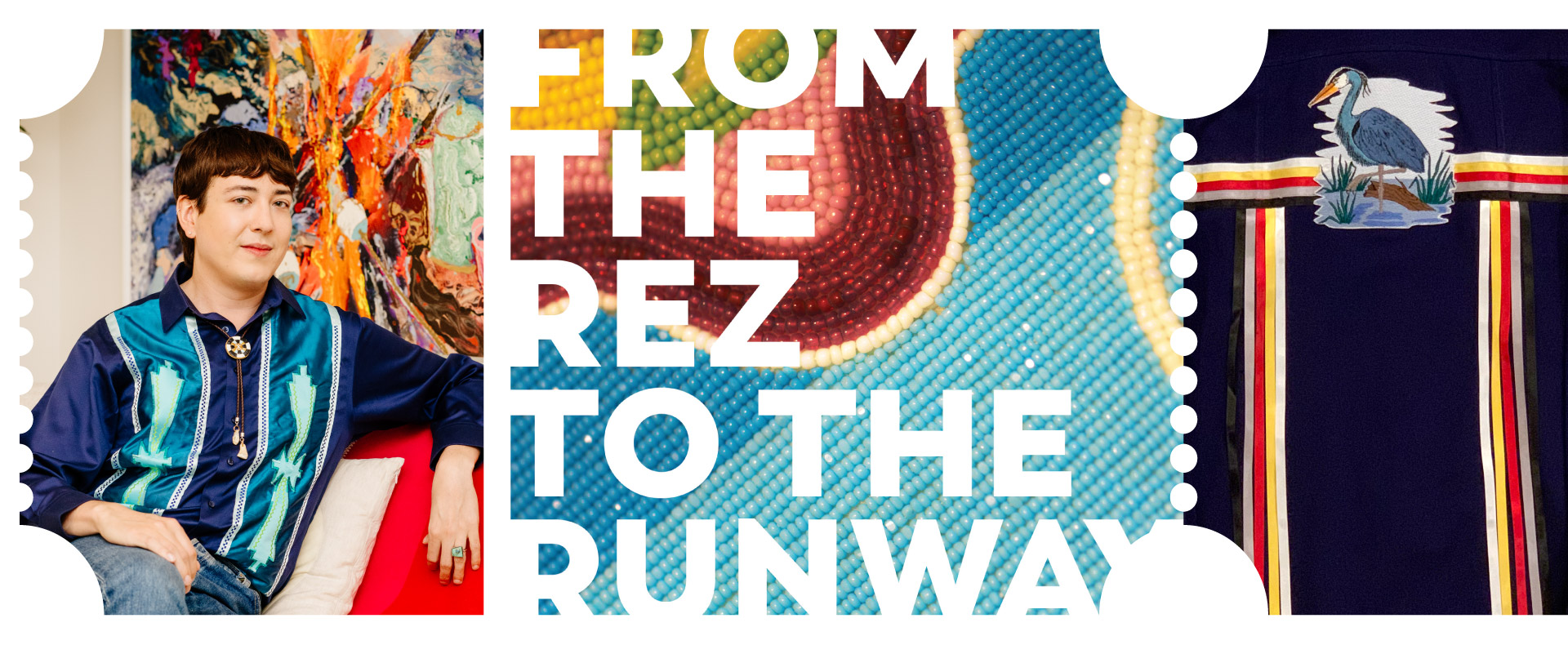 He was first introduced to style and design through his culture’s traditional Ojibwe powwow regalia—ribbon skirts, beaded belts, elaborate headdresses. But as a teenager, he became transfixed by the high-fashion designs and runway shows that he saw on Fashion Television and in the pages of Vogue.