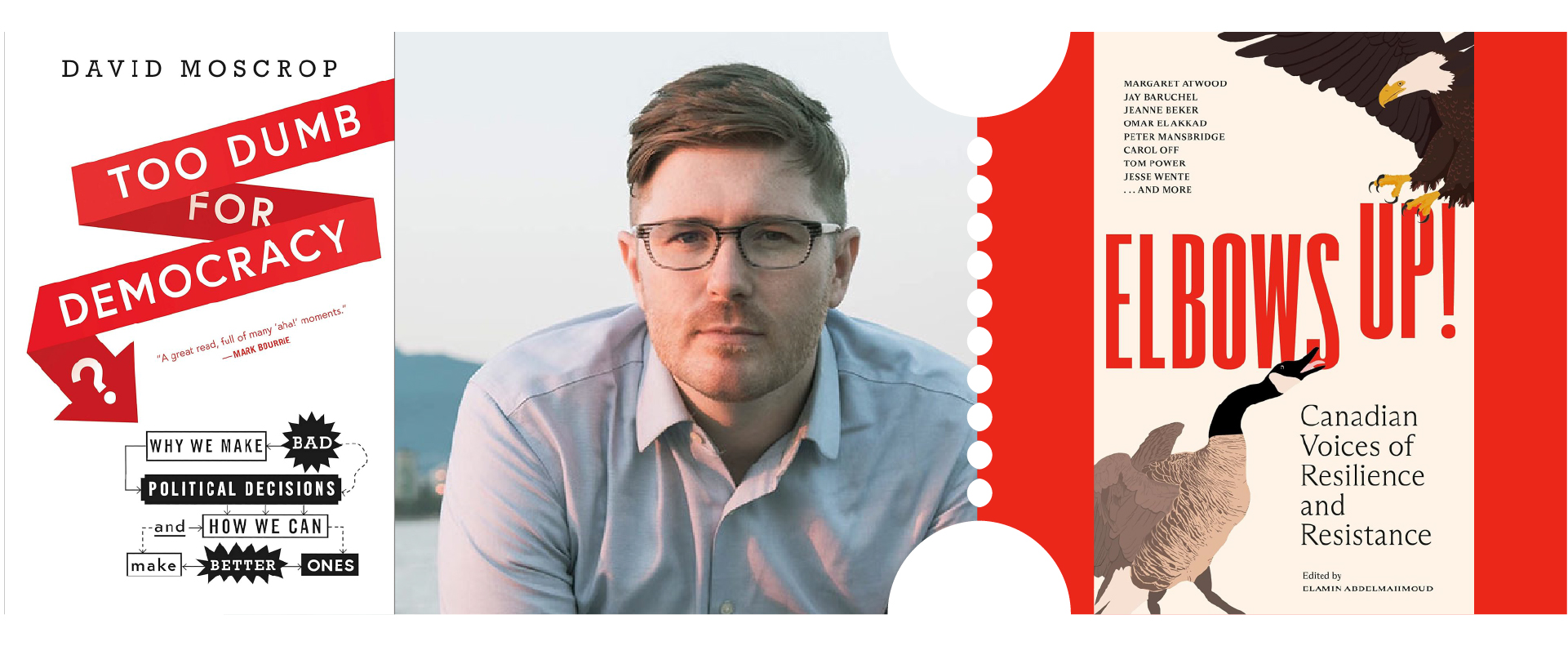 David Moscrop is a political columnist, commentator, and author of Too Dumb for Democracy? Why We Make Bad Political Decisions and How We Can Make Better Ones. He holds a PhD in political science from the University of British Columbia where he studied the psychology of democratic deliberation. Moscrop’s writing has appeared in The Washington Post, The Globe and Mail, Jacobin, and more. He offers political commentary and analysis for radio, television, and print. Moscrop lives in Ottawa.